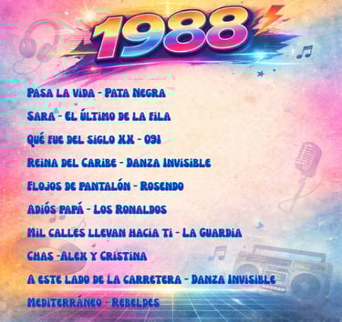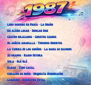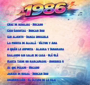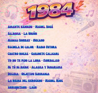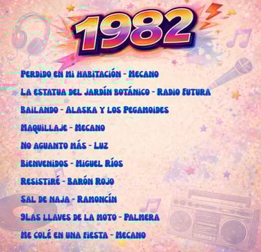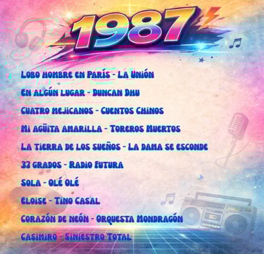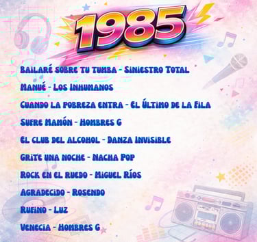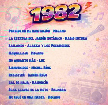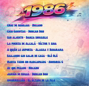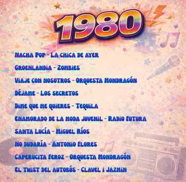 Enrique Sierra * Durante los años 80, la música en español vivió en España una explosión creativa sin precedentes. Mientras el mercado internacional dominaba las listas con grandes producciones anglosajonas, el pop y el rock cantados en nuestro idioma consolidaban una identidad propia. Esta selección de 100 canciones publicadas entre 1980 y 1989 no es un ranking ni un top de “las mejores”, sino una herramienta de recuerdo colectivo: la memoria musical en español que acompañó a toda una generación.