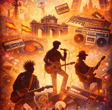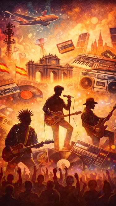 El pop, el rock urbano, la new wave, el tecno-pop y el rock más crudo convivieron en una escena diversa que pasó de la espontaneidad casi amateur de los primeros años a una consolidación comercial a mediados de la década. La llamada Movida madrileña fue el foco más visible, pero no el único: desde Vigo hasta Barcelona, desde Andalucía hasta el País Vasco, el mapa musical español se llenó de nuevas voces.