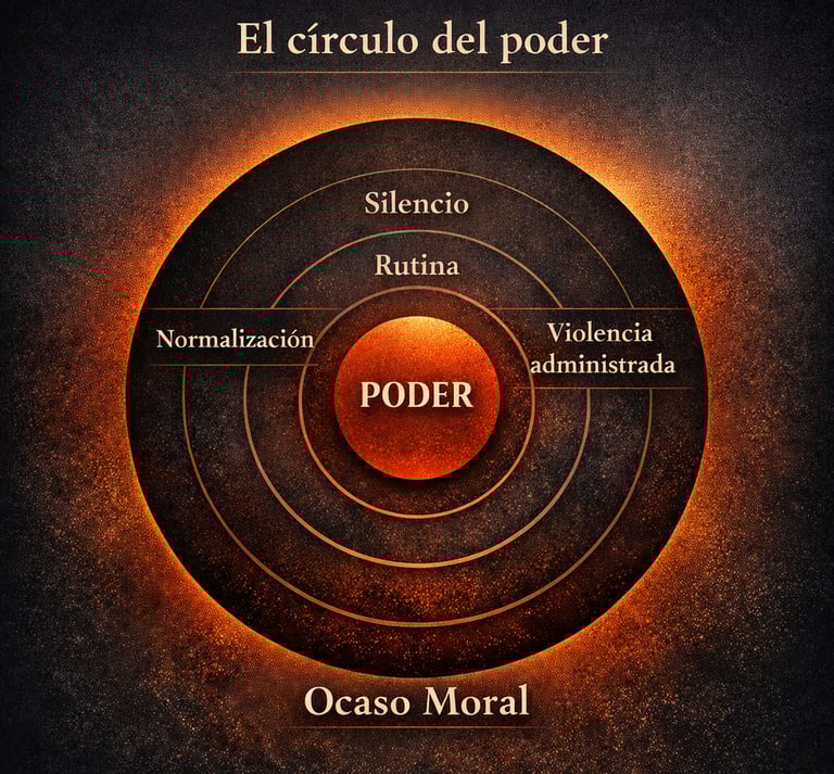 Ese silencio colectivo sostiene el mundo que la novela describe. No es un vacío, sino un lenguaje compartido que evita preguntas incómodas y aplaza cualquier responsabilidad. En ese sentido, El crepúsculo no habla solo del poder, sino de la participación —activa o pasiva— en su mantenimiento.