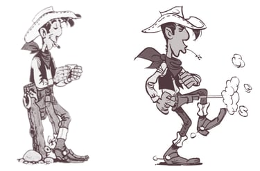 Lucky Luke surge en la posguerra europea, en un momento en que el western norteamericano dominaba el imaginario colectivo. Morris toma ese universo y lo filtra por el humor, estilizando figuras, exagerando gestos y convirtiendo la épica en ironía.