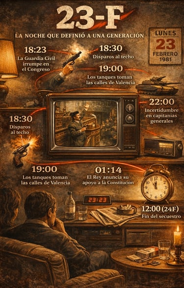 El 23 de febrero de 1981, un intento de golpe de Estado puso a prueba el joven sistema democrático español. Durante horas, el país vivió entre el miedo y la lógica incertidumbre